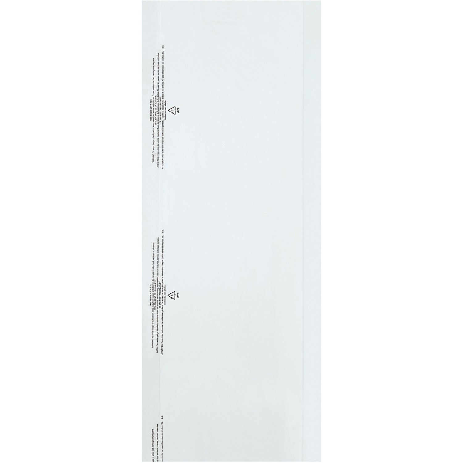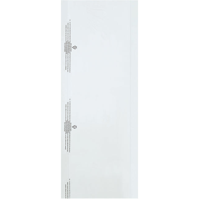 Thin, transparent .6 mil bags are convenient and durable. Perfect for use for traveling and storing. Pre-slit hole for hanger. Printed with child safety warning.