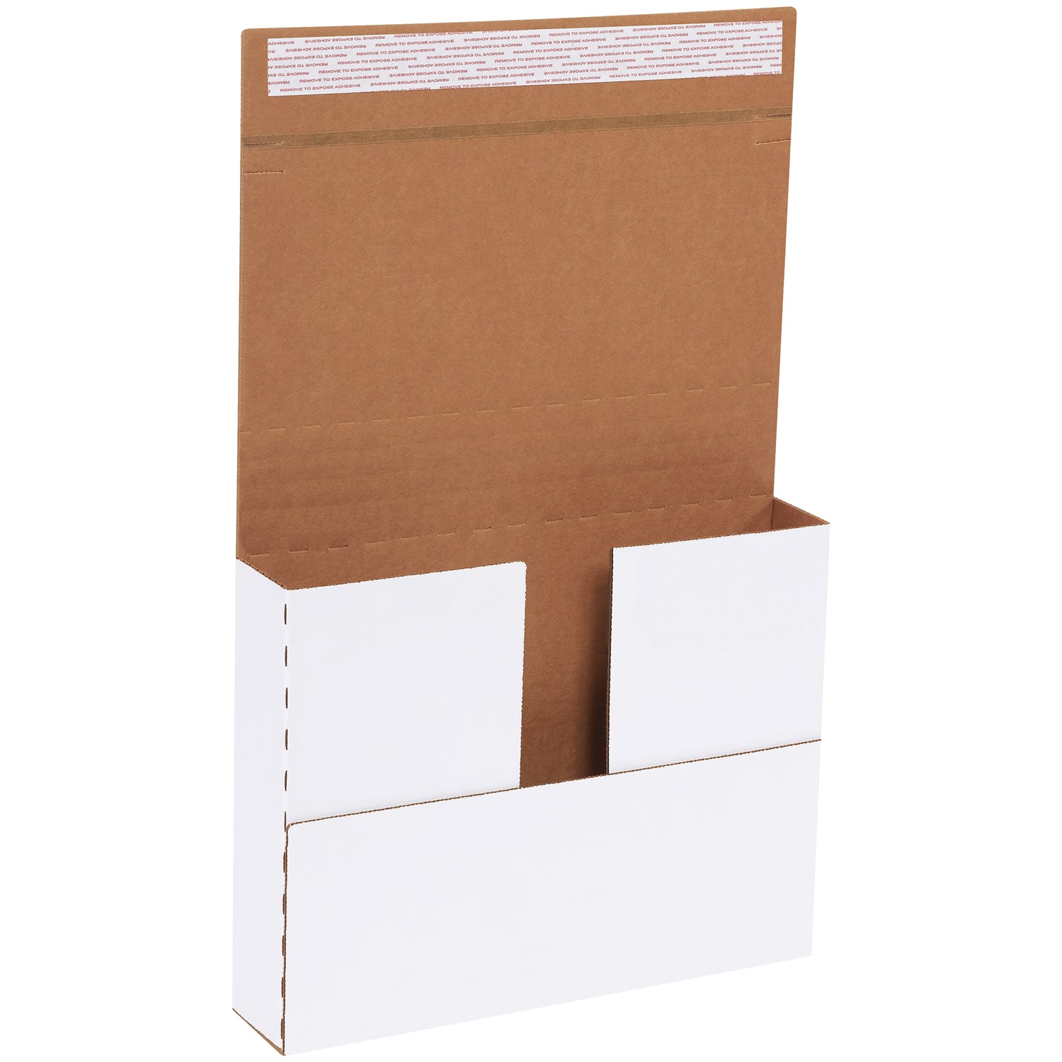 Convenient tear strip makes mailers easy to open. Folds together in seconds. These one-piece mailers have scores at multiple depths to ensure the proper fit for your products. Simply place product in the center, fold in the sides at your desired depth, peel and seal. Strong, ECT-32-B, white corrugated construction.