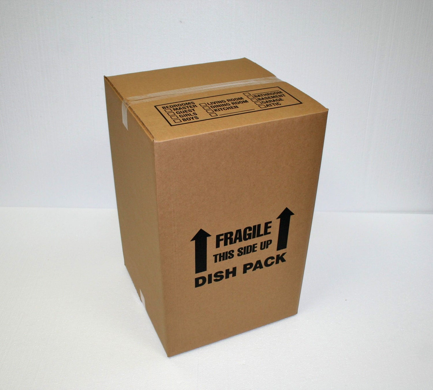 This is a double walled box for packing dishes. You can use this box with or without a divider kit, sold separately. This box is also good for packing vases and lamp bases. The size is 18 x 18 x 28.