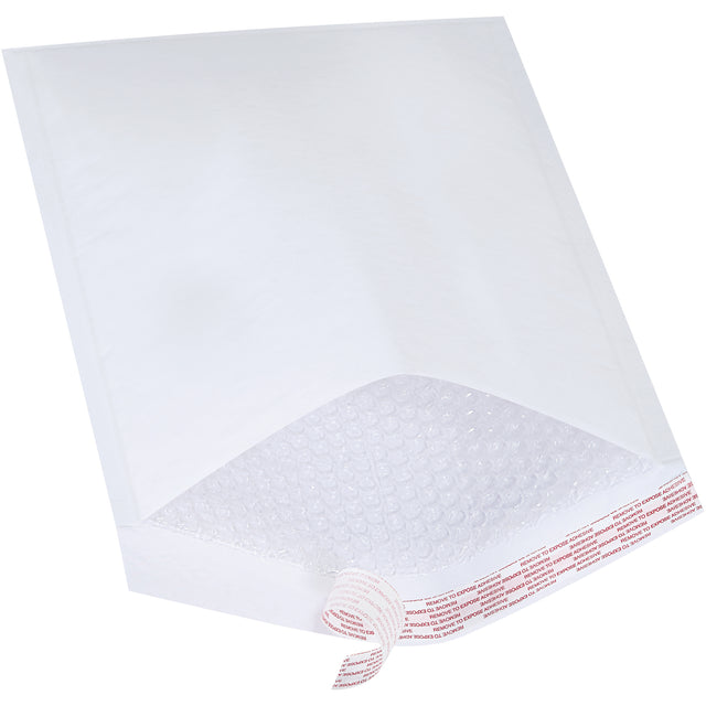 Mailers feature a 3/16" high slip bubble lining for easy insertion of products. Peel and stick lip provides a secure, tamper evident closure. Attractive white paper exterior.