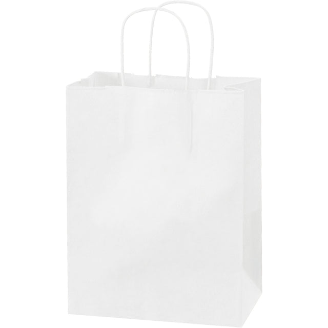 8 x 4 1/2 x 10 1/4" White Paper Shopping Bags