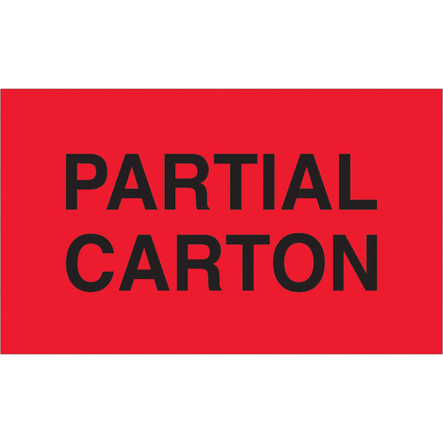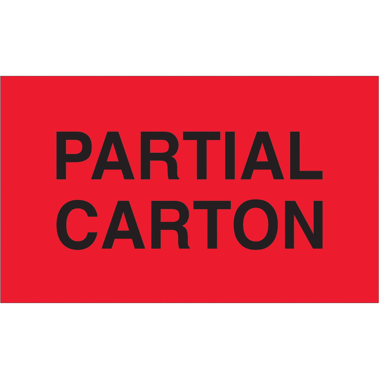 3 x 5" - "Partial Carton" (Fluorescent Red) Labels
