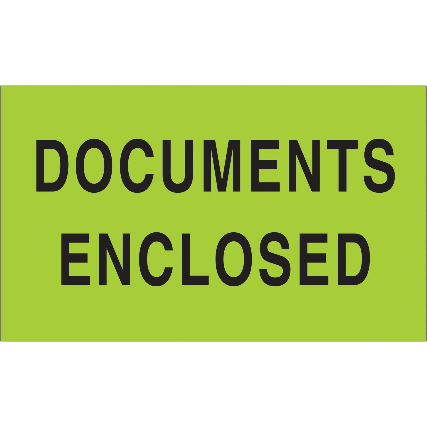 3 x 5" - "Documents Enclosed" (Fluorescent Green) Labels