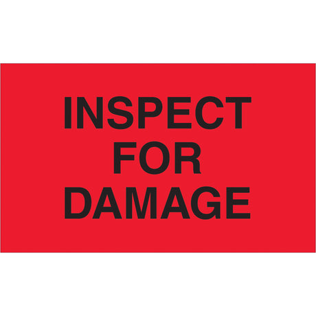 3 x 5" - "Inspect For Damage" (Fluorescent Red) Labels