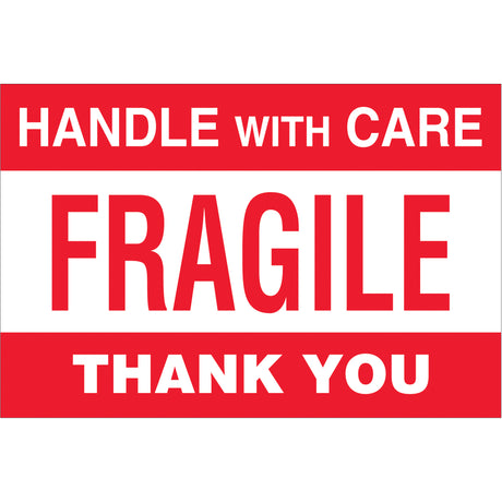 3 x 10" - "Fragile - Handle With Care" (Fluorescent Red) Labels