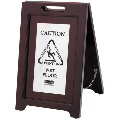 Wooden Wet Floor Sign - 2-Sided Multi-Lingual Stand