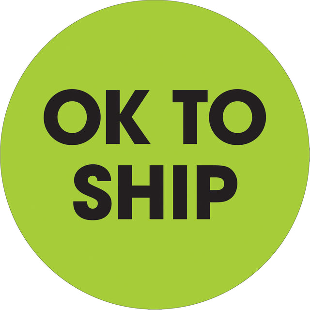 2" Circle - "Ok To Ship" Fluorescent Green Labels