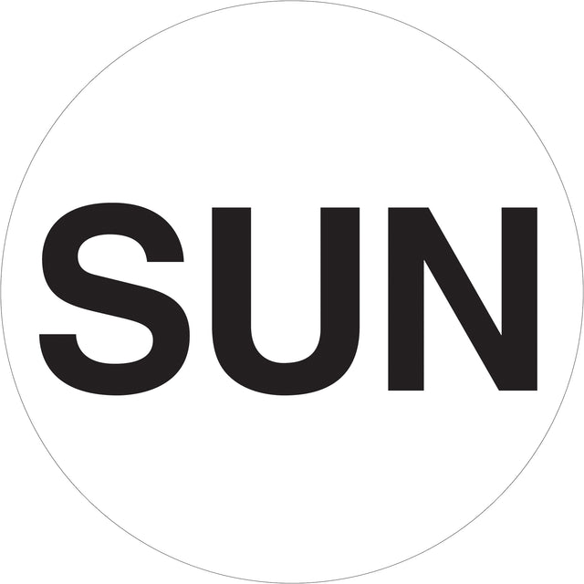 1" Circle - "SUN" (White) Days of the Week Labels is backordered and will ship as soon as it is back in stock.