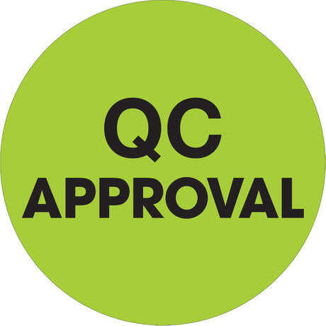 2" Circle - "QC Approval" Fluorescent Green Labels