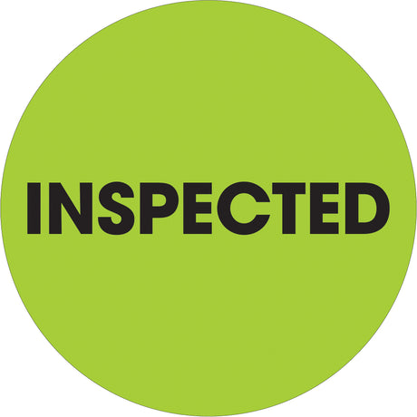 2" Circle - "Inspected By" Fluorescent Green Labels