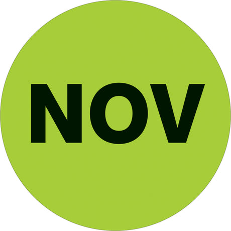 2" Circle - "NOV" (Fluorescent Green) Months of the Year Labels