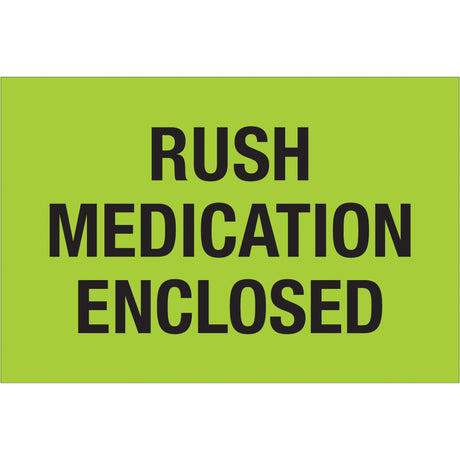 2 x 3" - "Rush - Medication Enclosed" (Fluorescent Green) Labels