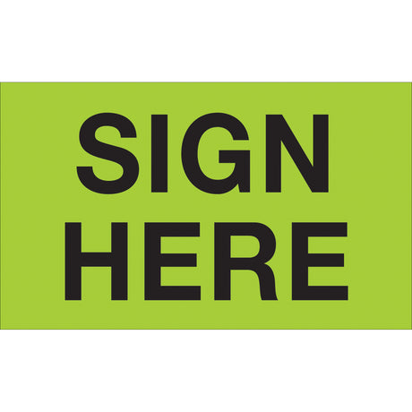 3 x 5" - "Sign Here" (Fluorescent Green) Labels
