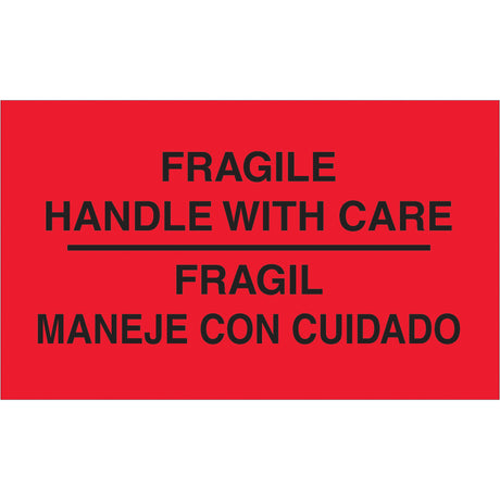 3 x 5" - "Fragil - Maneje Con Cuidado" (Fluorescent Red) Bilingual Labels