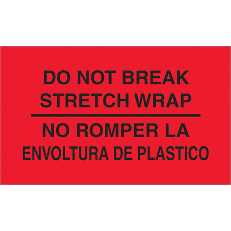 3 x 5" - "No Romper La Envoltura De Plastico" (Fluorescent Red) Bilingual Labels