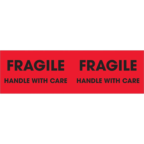 3 x 10" - "Fragile - Handle With Care" (Fluorescent Red) Labels