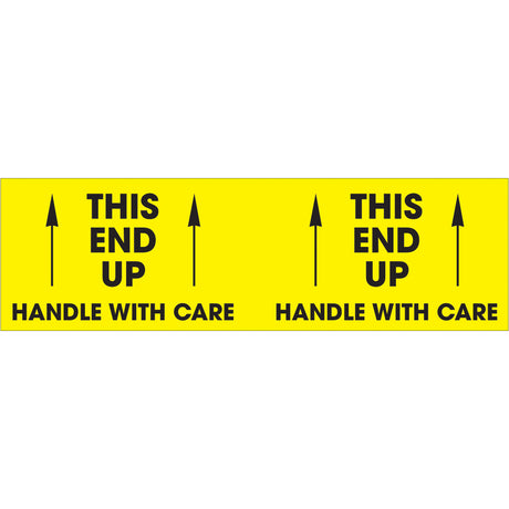 3 x 10" - "This End Up - Handle With Care" (Fluorescent Yellow) Labels