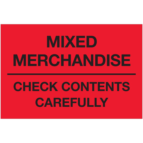 2 x 3" - "Mixed Merchandise - Check Contents Carefully" (Fluorescent Red) Labels