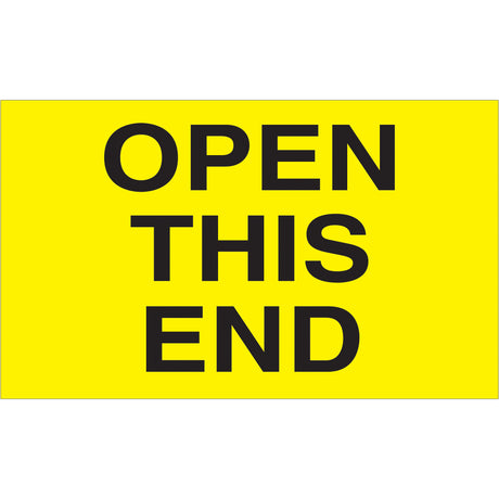 3 x 5" - "Open This End" (Fluorescent Yellow) Labels