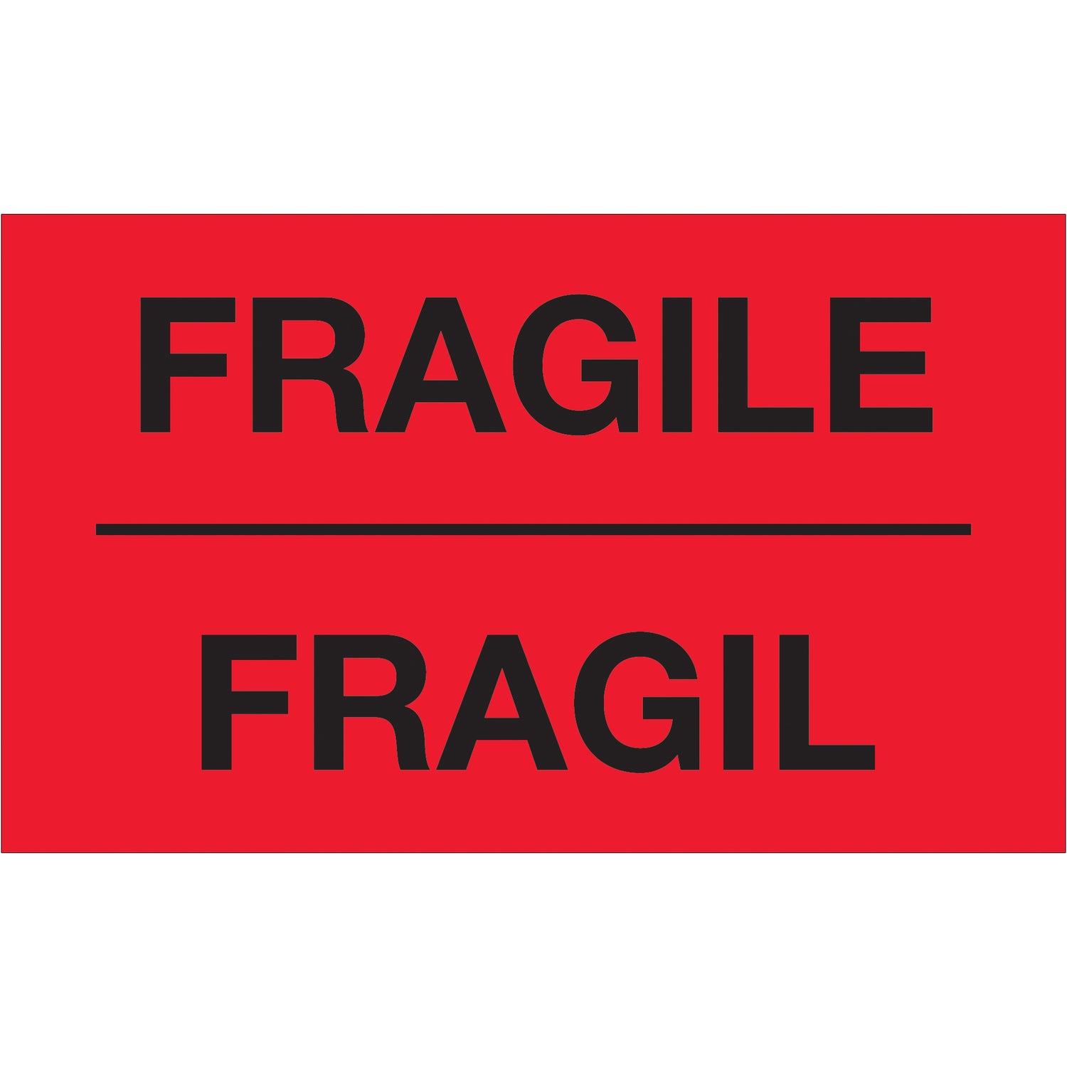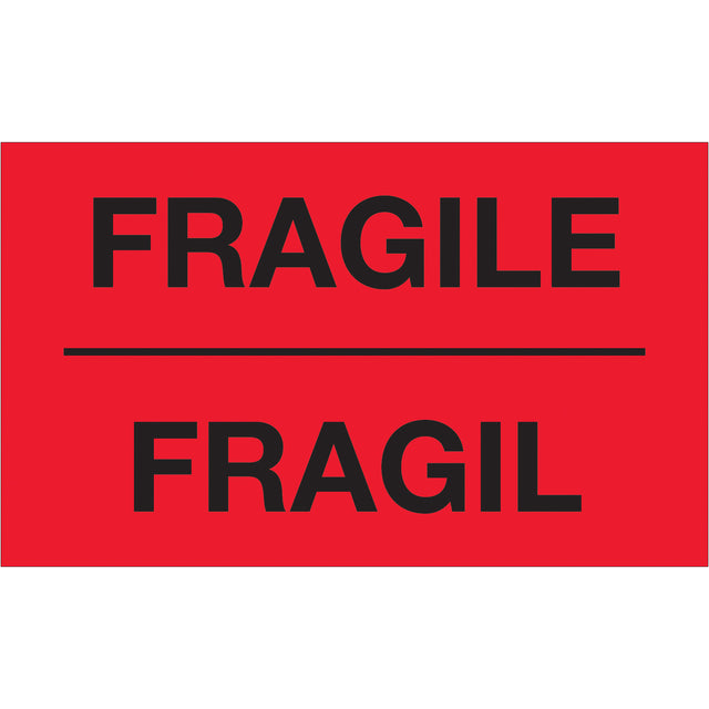 3 x 5" - "Fragil" (Fluorescent Red) Bilingual Labels