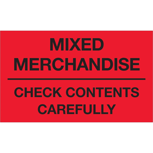 3 x 5" - "Mixed Merchandise - Check Contents Carefully" (Fluorescent Red) Labels