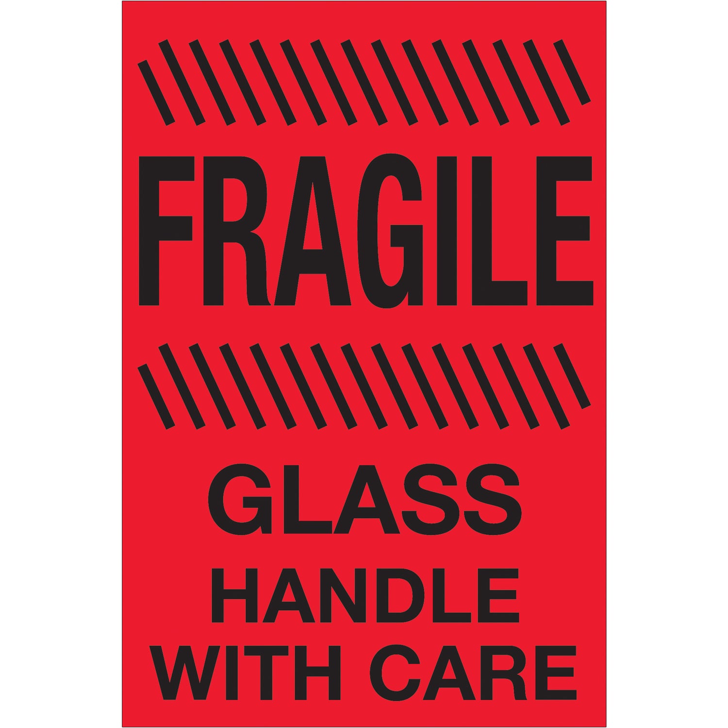 4 x 6" - "Fragile - Glass - Handle With Care" (Fluorescent Red) Labels