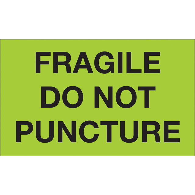 3 x 5" - "Fragile - Do Not Puncture" (Fluorescent Green) Labels