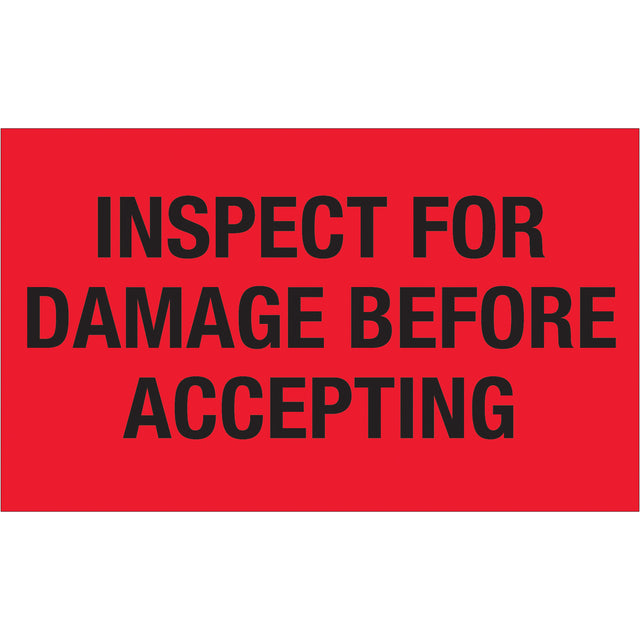 3 x 5" - "Inspect For Damage Before Accepting" (Fluorescent Red) Labels