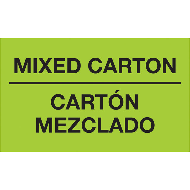 3 x 5" - "Mixed Carton - Carton Mezclado" (Fluorescent Green) Bilingual Labels