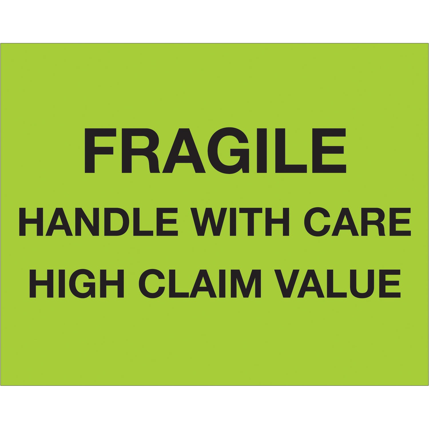 8 x 10" - "Fragile Handle With Care - High Claim Value" (Fluorescent Green) Labels is backordered and will ship as soon as it is back in stock.