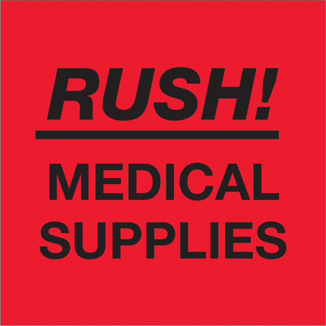 4 x 4" - "Rush - Medical Supplies" (Fluorescent Red) Labels
