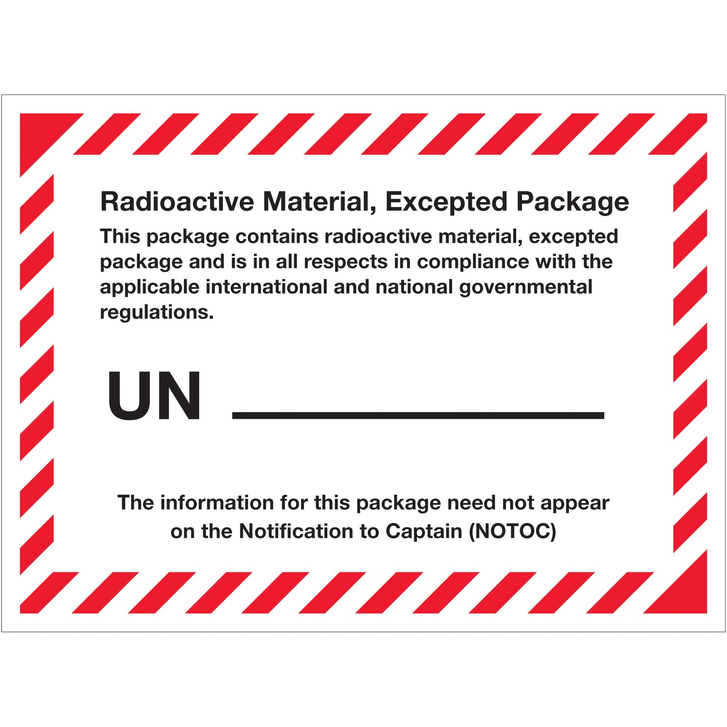 4 3/8 x 3 1/4" - "Radioactive Material, Excepted Package" Labels