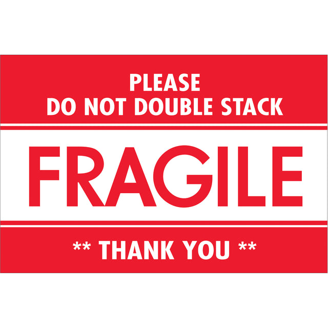 2 x 3" - "Fragile - Do Not Double Stack" Labels