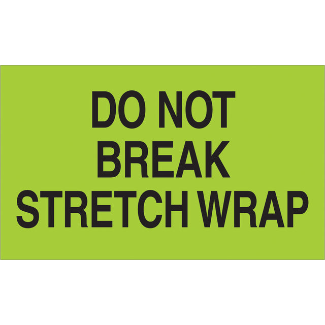 3 x 5" - "Do Not Break Stretch Wrap" (Fluorescent Green) Labels
