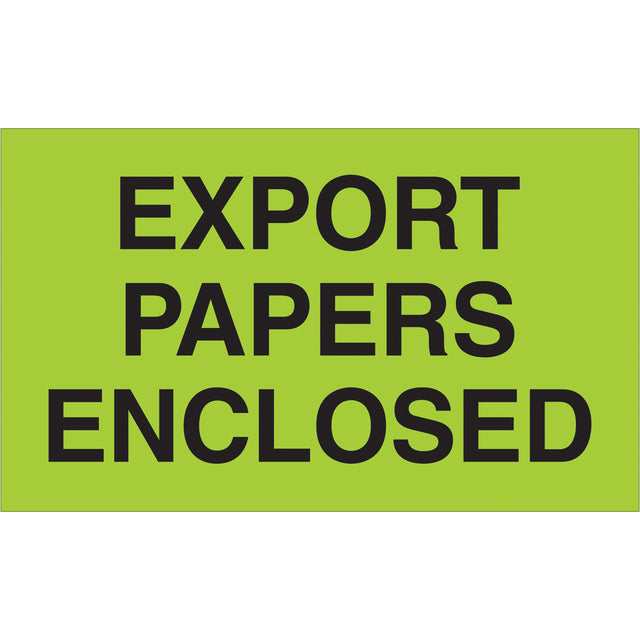 3 x 5" - "Export Papers Enclosed" (Fluorescent Green) Labels