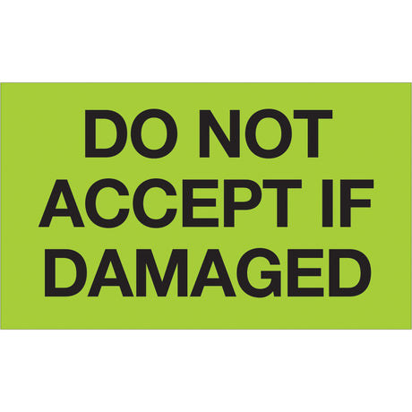 3 x 5" - "Do Not Accept If Damaged" (Fluorescent Green) Labels