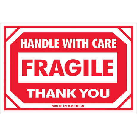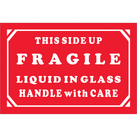 2 x 3" - "Fragile - Liquid In Glass - Handle With Care" Labels