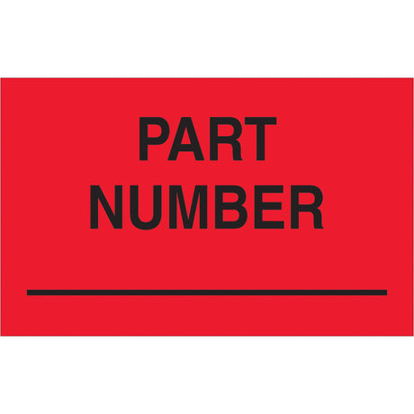 1 1/4 x 2" - "Part Number" (Fluorescent Red) Labels
