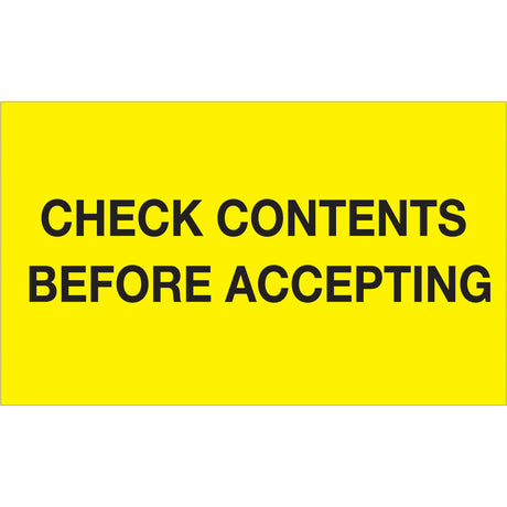 3 x 5" - "Check Contents Before Accepting" (Fluorescent Yellow) Labels