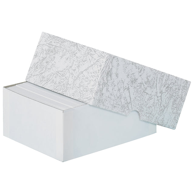 Strong, durable, two-piece construction. Boxes are fully assembled—no folding required. Covers are tightly wrapped with attractive, gray, leatherette paper.