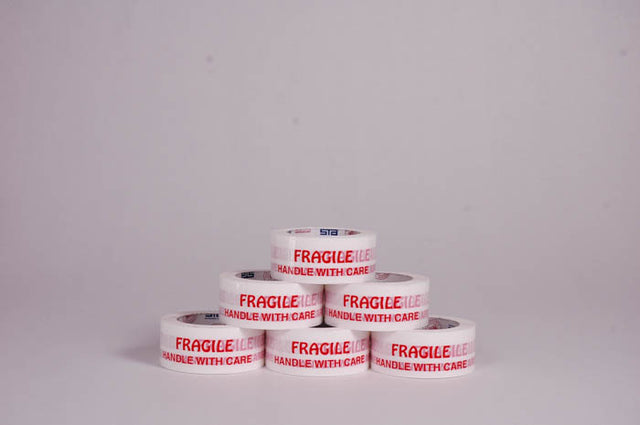 2" X 110 YD 2 mil acrylic packaging tape. This fragile tape lets handlers know your items are breakable. Case of 36 rolls.