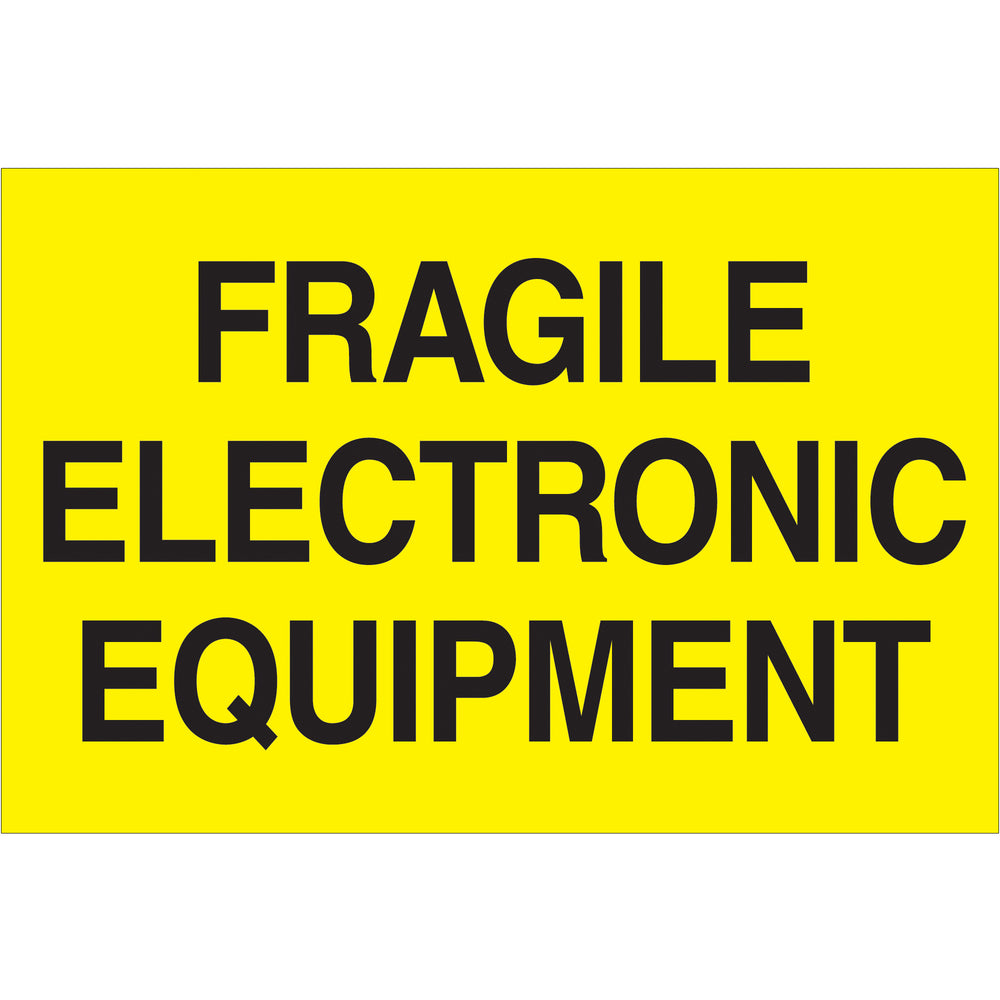 2 x 3" - "Fragile - Electronic Equipment" (Fluorescent Yellow) Labels