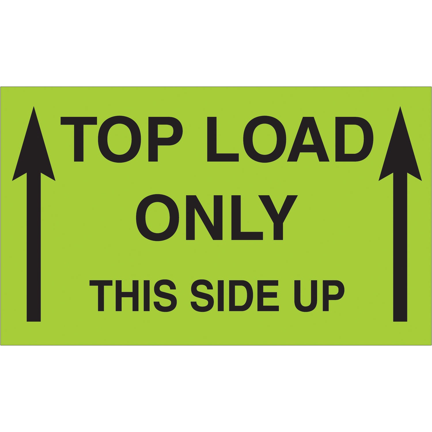 3 x 5" - "Top Load Only - This Side Up" (Fluorescent Green) Labels