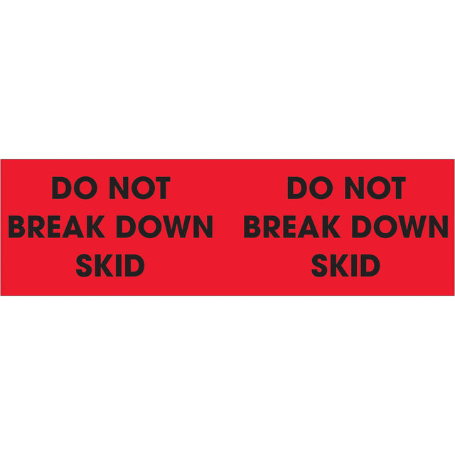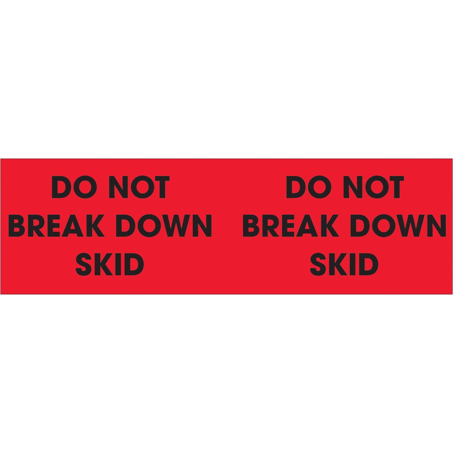 3 x 10" - "Do Not Break Down Skid" (Fluorescent Red) Labels
