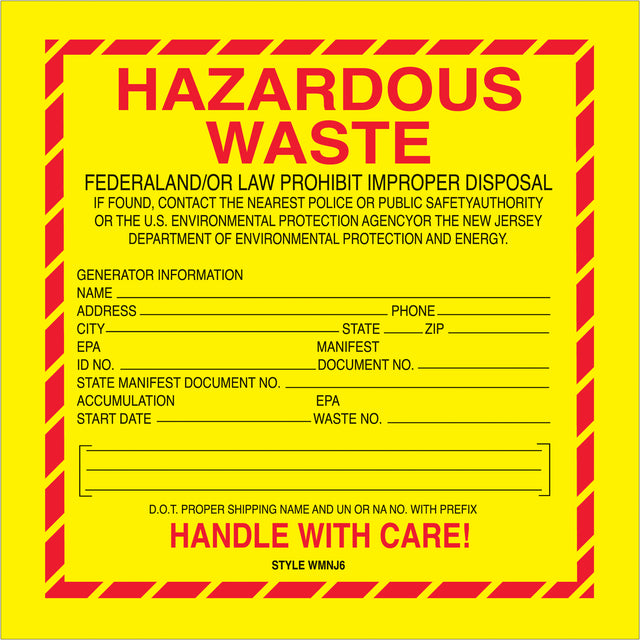 6 x 6" - "Hazardous Waste - New Jersey" Labels